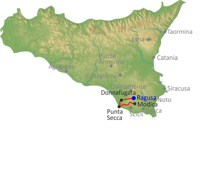 Donnalucata e Punta Secca sono due borghi marinari sulle coste sabbiose nel sudest dell’isola. I due villaggi di pescatori sono stati abitati da periodi antichissimi e sono stati teatro di numerose battaglie tra Arabi e Normanni nell’undicesimo secolo. La tipicità di luoghi poco conosciuti, la ricchezza del paesaggio costiero e dei mari pescosi e il modo di vivere genuino dela gente del posto hanno reso queste due ampie baie ideali per ambientare scene di vita siciliana della celebre serie TV il commissario Montalbano. Punta Secca è il luogo dove l’ispettore si ristora nelle acque di fronte alla casa sul mare alla fine di una piccola baia sabbiosa; Donnalucata è un altro luogo dove spesso avvengono incontri con testimoni, presunti delinquenti e semplici persone di passaggio. In entrambi i luoghi Montalbano consuma i suoi pasti a base di pesce che richiamano benissimo sia la vocazione marinara e autentica dei luoghi che della cucina siciliana.